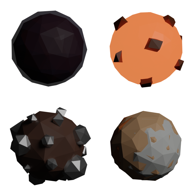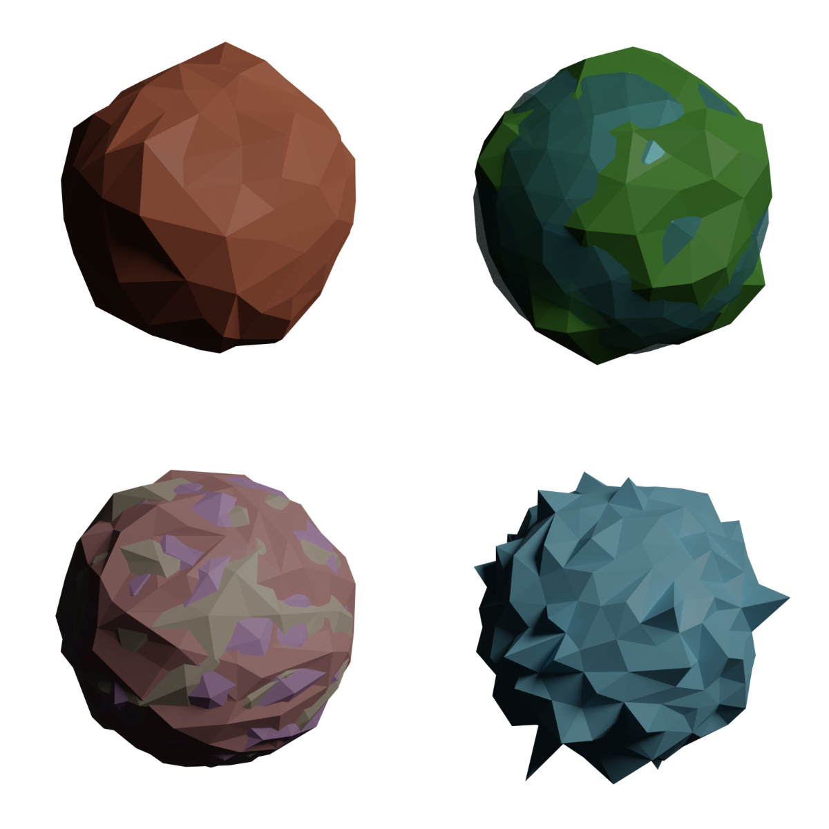 Planets pack is a bundle of 100 unique planet models organized into 10 different planet types. The pack is ideal for space themed games and projects. All models are provided as .blend and .fbx files compressed into a single zip.